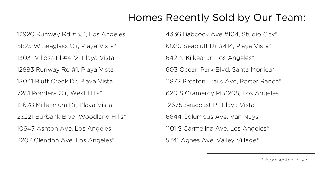 Despite a slower summer for some, we have been staying busy at Highland Premiere with 5 closings the past 2 weeks. We have also been servicing our many sellers with 6 listings in Los Angeles within the past month. In such a dynamic real estate market, it is important to work with the best real estate team to find the best deals in a desired city, such as Los Angeles.